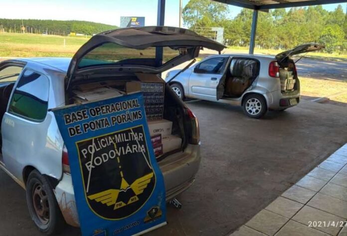 O fato aconteceu em frente a Base Operacional do Aquidabã, em Ponta Porã, quando foram parados um Fiat Uno com placas de Itapevi (SP) e um Fiat Palio com placas de Cambé (PR).