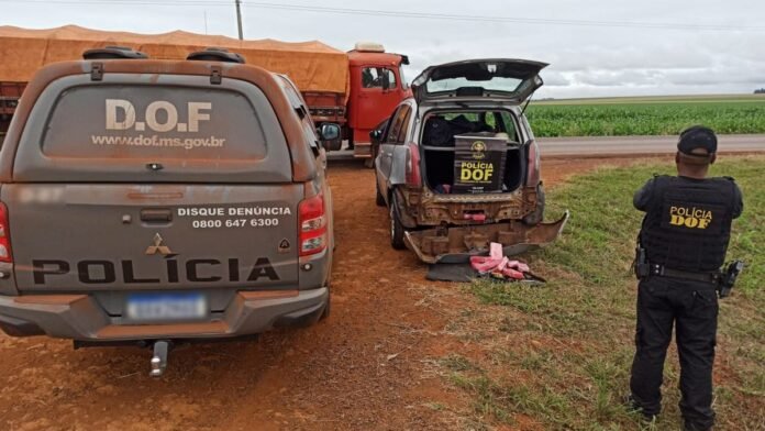 Policiais do Departamento de Operações de Fronteira (DOF) apreenderam, na tarde deste quinta-feira em Amambai, um Fiat Idea carregado com 25 volumes prensados de pasta base de cocaína, com peso total de 27 quilos, que estavam escondidos em um compartimento oculto no porta-malas do veículo.