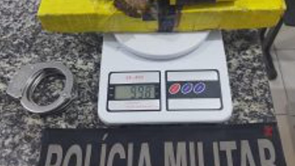 Realizada a pesagem do entorpecente que totalizou 998 gramas de maconha.