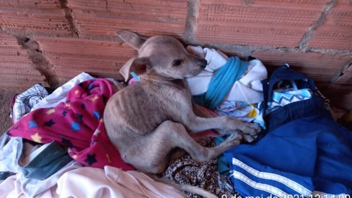 Um dos cachorros recolhidos.