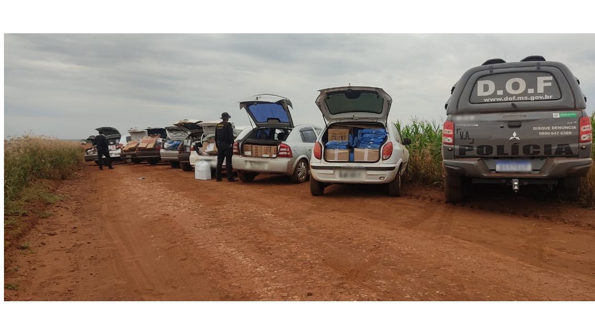 Os militares visualizaram o comboio de veículos e, durante a abordagem policial, constatou-se que estavam carregados com: 130 celulares Xiaomi; 1.250 pacotes de cigarro; 17 caixas de óculos; 09 caixas de cosméticos; 41 caixas de isqueiro; 13 caixas de relógio; 99 roteadores; 02 pneus; 02 sacos de câmaras de ar; um saco de parafusos; 02 sacos de peças para motocicletas; e, uma caixa de cigarro eletrônico.