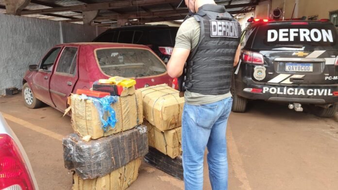 Na tarde desta sexta-feira (21), após receberem informações de um automóvel que se deslocava pela rodovia MS 379, que liga Dourados a Laguna Carapã, policiais civis da Delegacia de Repressão aos Crimes de Fronteira – Defron identificaram o veículo Ford Fiesta transportando uma carga de maconha.