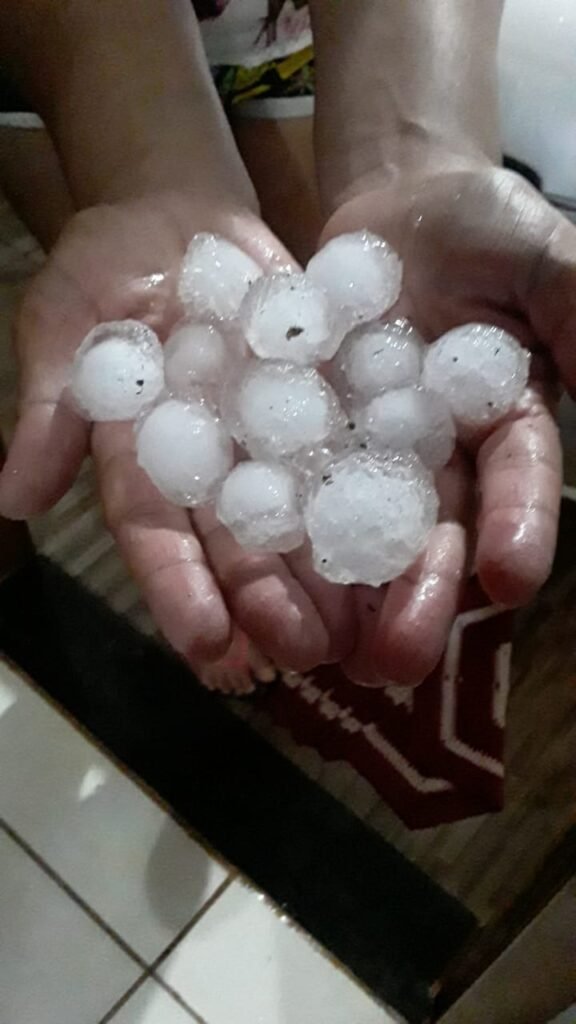 Muitos moradores também tiveram prejuízos com os granizos que acabaram afetando as placas solares de suas residências, muitas delas arrancadas pelo vento.