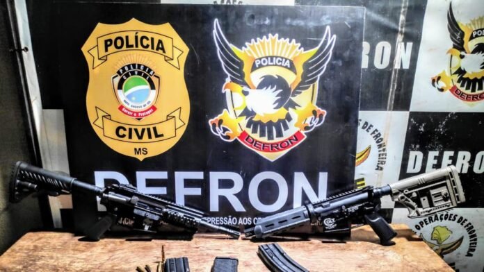 Policiais civis da Delegacia Especializada de Repressão aos Crimes de Fronteira – Defron apreenderam dois fuzis calibre 5.56, em Ponta Porã, nesta segunda-feira (31). A equipe realizava diligências na linha internacional, na divisa de Ponta Porã com a cidade paraguaia de Pedro Juan Caballero quando visualizaram dois indivíduos que transitavam em uma motocicleta sem placas, estando o passageiro com uma mochila nas costas.