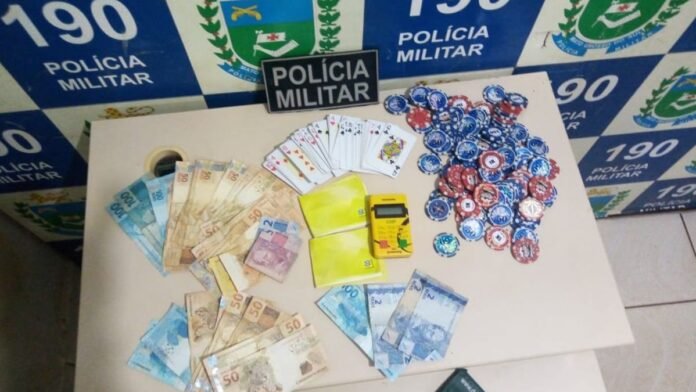 Diante da denúncia, os policiais foram até o local e constataram a veracidade das informações. Diversos materiais de jogo, além de folhas de cheque, máquina de cartão e valores em dinheiro, foram apreendidos.