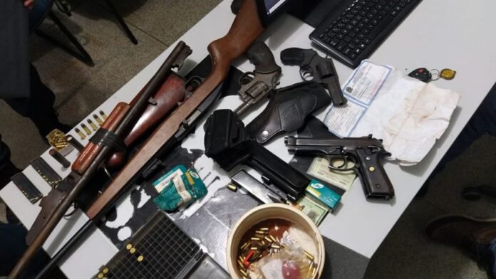 No local foram encontradas diversas armas de fogo: 1 revólver cal 38, 1 revólver cal 32, 01 espingarda cal 28, 1 espingarda Winchester cal 22 e 1 pistola cal 9mm, além de grande quantidade de munição de calibres diversos.