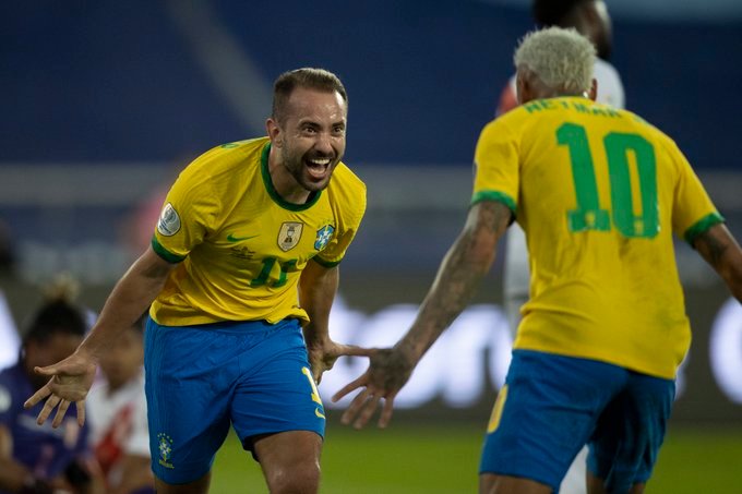 Com gols do lateral Alex Sandro, do meia Everton Ribeiro e dos atacantes Neymar e Richarlison, o Brasil goleou a seleção peruana por 4 a 0, na noite desta quinta-feira (17) no estádio Nilton Santos, no Rio de Janeiro, pela 2ª rodada da Copa América. O resultado deixou o time do técnico Tite na liderança do Grupo B com seis pontos e 100% de aproveitamento.