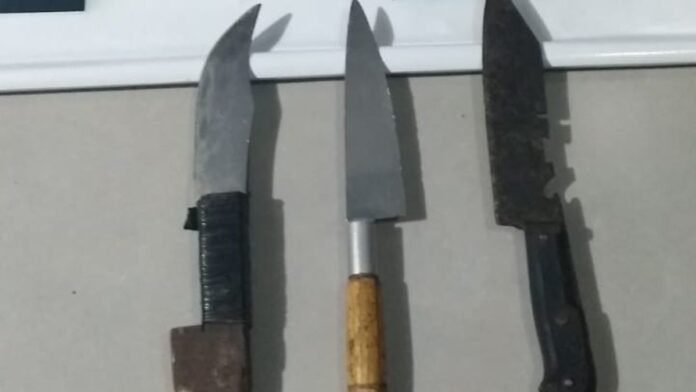 Diante da situação o acusado foi preso e encaminhado à Delegacia de Polícia Civil para os procedimentos legais, juntamente com as facas apreendidas.