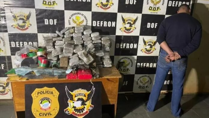Nesta terça-feira (20) a polícia de fronteira Defron realizou a prisão de um morador do imóvel localizado no Jardim Bonanza, em Dourados, flagrando com o indivíduo 46 Kg da droga skank dentro da residência.