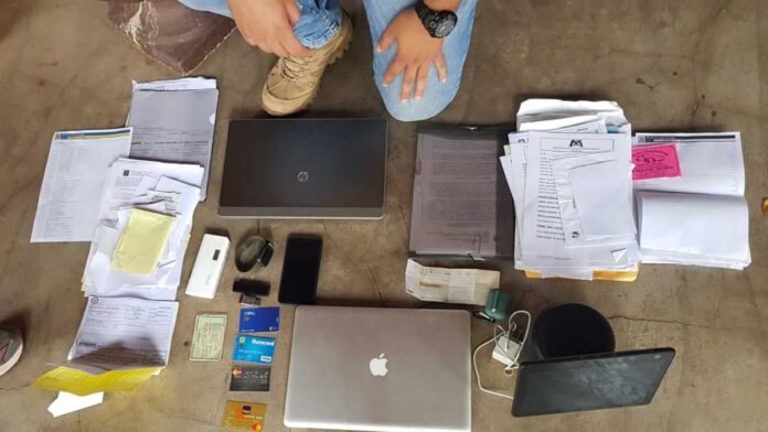 Durante as diligências foram encontrados na residência do investigado alguns documentos bancários, tais como boletos, recibos e cartões, dois notebooks, aparelhos eletrônicos, um aparelho celular e uma carteira de identidade com dados ideológicos falsos.