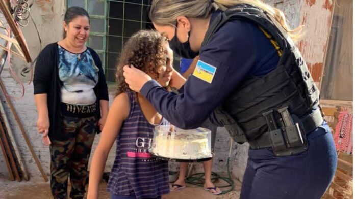 Na segunda-feira (09/08), a guarnição de serviço na ROMO 3 visitou logo pela manhã a pequena Maria Eduarda que completou 10 anos, levando bolo e balões, alegrando o dia da aniversariante com a surpresa.