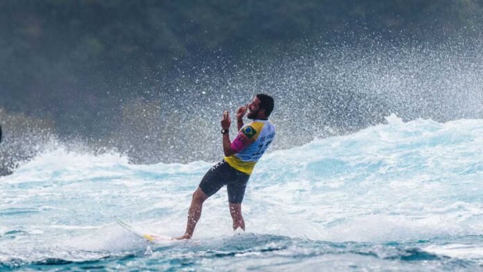 O paranaense Peterson Crisanto foi o primeiro a cair no mar de Barra de La Cruz nesta manhã e eliminou da disputa o japonês Kanoa Igarashi, que derrotou Medina na semifinal dos Jogos de Tóquio. Crisanto somou 14.33, contra 13.66 de Igarashi, segundo colocado. Em terceiro, eliminado, ficou o mexicano Diego Cadena, com 10.37.