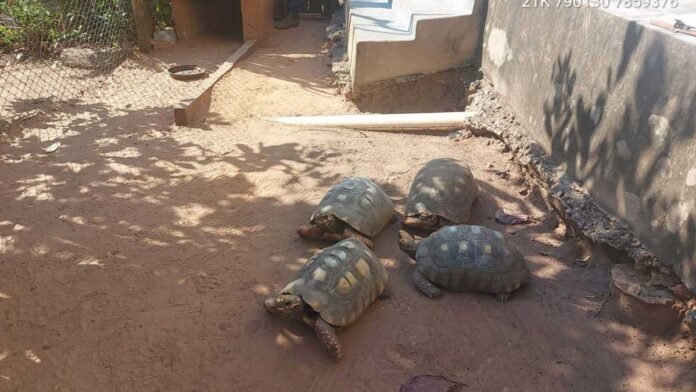Policiais Militares Ambientais de São Gabriel do Oeste realizavam trabalhos de orientação para prevenção aos incêndios na operação Prolepse nas propriedades rurais e apreenderam ontem (13) à tarde, quatro animais silvestres da espécie jabuti (Chelonoidis carbonária) em uma fazenda, localizada no município de Camapuã, a 35 km da cidade.