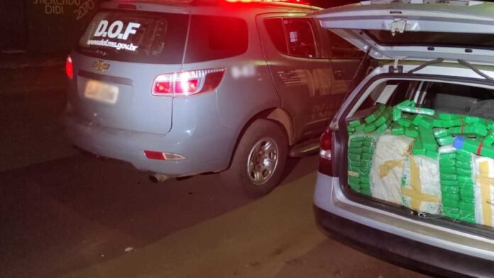 Policiais do Departamento de Operações de Fronteira (DOF) apreenderam, na madrugada desta terça-feira, um veículo VW Parati de cor prata e placas de Avaré (SP) carregado com 376 quilos de maconha.