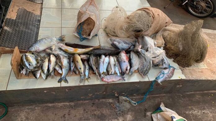 Além disso, o pescador amador, também só poderia capturar e abater um exemplar de peixe nativo e mais cinco exemplares de piranha, conforme cota estabelecida em norma. Portanto, havia capturado pescado acima da quantidade permitida, fato que também é caracterizado como crime. Ainda, vários petrechos ilegais de pesca foram apreendidos no rancho, dentre eles, duas fisgas, cinco tarrafas e duas redes de pesca.