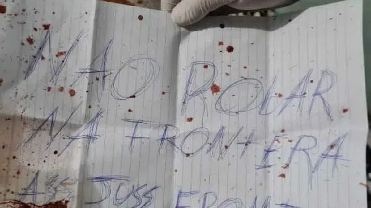 Como já havia acontecido em outros assassinatos, ao lado do corpo em uma folha de caderno que estava escrito: “Nao rob na frontera.Ass: Juss Fronteira” (sic).
