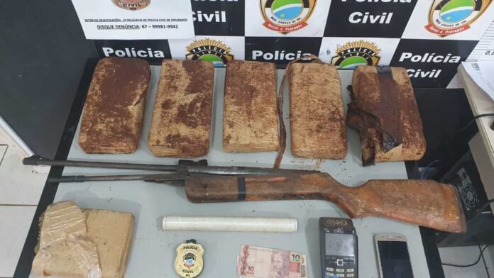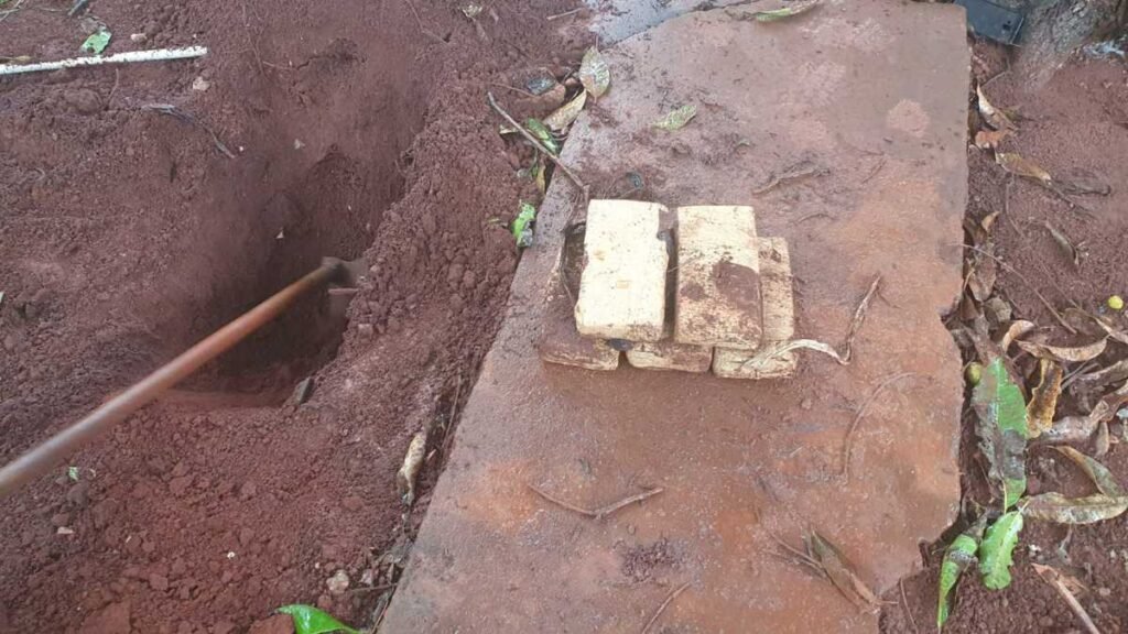 Durante o cumprimento de um mandado busca e apreensão, nesta quinta-feira, 07/10, a Polícia Civil encontrou droga enterrada no quintal de uma residência em Dourados. Os fatos aconteceram em um imóvel situado na rua Tito Mello, no bairro Jardim Guaicurus.