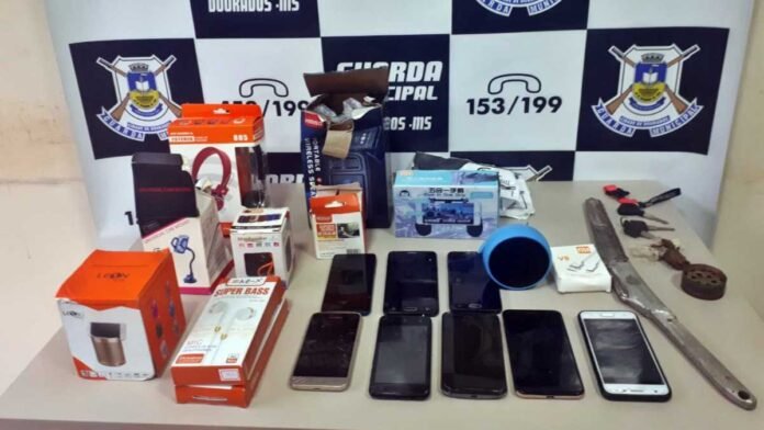 A Guarda Municipal de Dourados (GMD) recuperou na tarde deste domingo (10/10) 05 aparelhos celulares e vários objetos furtados de uma loja de eletrônicos no Bairro Dioclecio Artuzi, prendendo o autor de 20 anos.