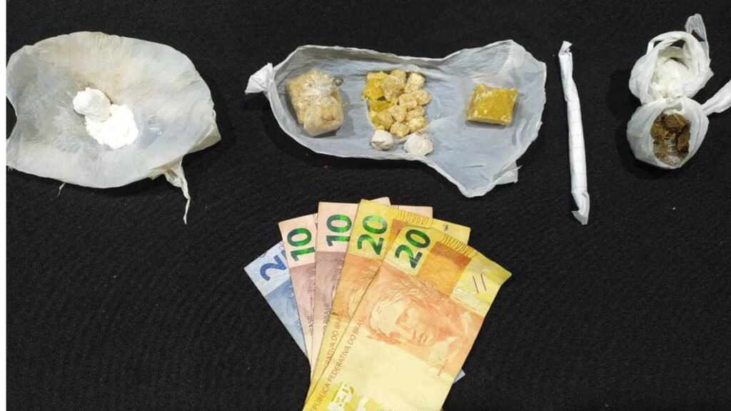 Já com a adolescente, os investigadores encontraram 16 pedras de crack pequenas, a qual estava embalada em sacola plástica e R$ 62,00. Além disso, próximo ao casal havia uma pochete contendo uma porção de maconha, com peso de 7 gramas e 1 porção de cocaína, com peso de 5 gramas.