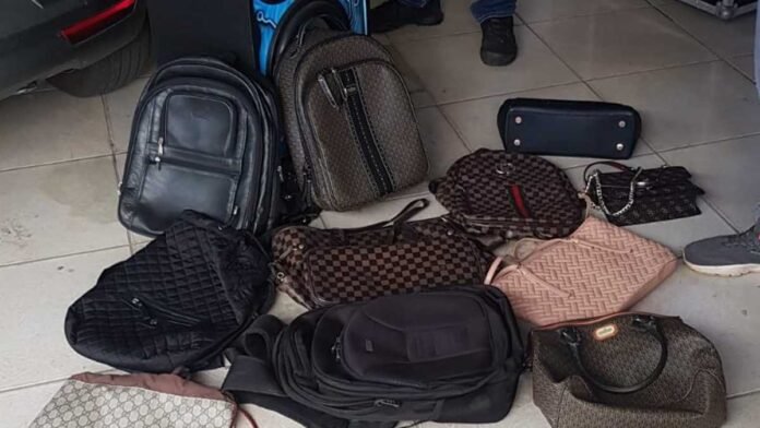 Na residência, os investigadores cumpriram também um mandado de busca e apreensão e localizaram diversas bolsas femininas e mochilas, todas furtadas de veículos das vítimas, além de três bloqueadores remotos de alarmes veiculares.