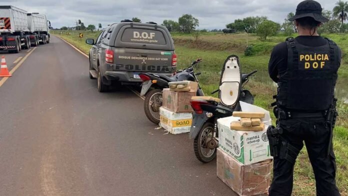 Na Honda Biz, que a mulher conduzia, estavam dois fardos de maconha com peso de 77,4 Kg. Na motocicleta abandonada estavam mais dois fardos da droga, com peso de 76 Kg. Ao todo foram apreendidos 153,4 Kg do entorpecente distribuídos em vários volumes prensados; um prejuízo estimado em mais de 240 mil reais.