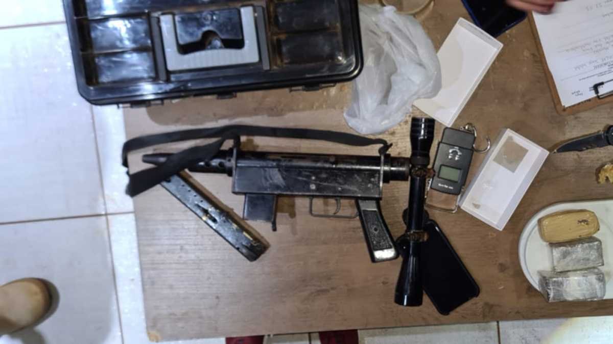 Foi encontrado na casa do mecânico, Gerardo Veja Morínigo, de 25 anos, morto a tiros na noite de ontem (30), uma metralhadora e drogas, durante investigação a Polícia Nacional do Paraguai que esteve na residência da vitima.