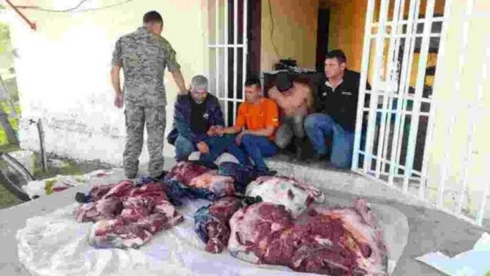 A Policia Nacional recuperou cerca de 350 quilos de carnes roubadas no distrito de, RI3 Corrales, Departamento de Caaguazú e prendeu quatro pessoas envolvidas no furto na manhã deste sábado (4), na ação ainda foram apreendidos um veículo, uma motocicleta e um rifle.
