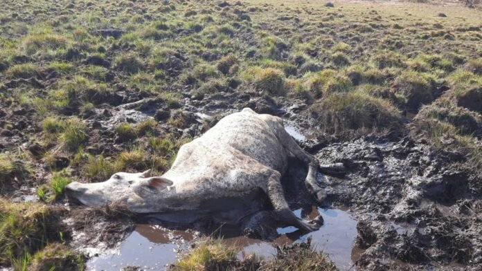 Gado vítima de maus-tratos, que fora a óbito por fome.