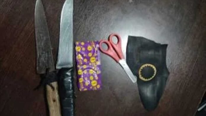 Na abordagem os policiais militares encontraram com o suspeito, duas facas, um simulacro de fuzil e preservativos, sendo que naquele local, há dois dias uma ciclista foi estuprada e assassinada.