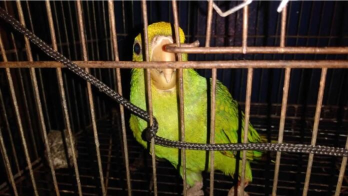 A Policiais Militares Ambientais de Dourados foram procurados por uma moradora da Vila Vieira, que entregou no endereço do quartel ontem (29) à tarde, uma maritaca ferida vítima de linha de pipa. A moradora informou que encontrou o animal caído ao chão, enrolado em uma linha utilizada para soltar pipa, na área de um pesque pague, localizado no bairro João Paulo II, na cidade e, por estar ferido, o recolheu para entregar à PMA.