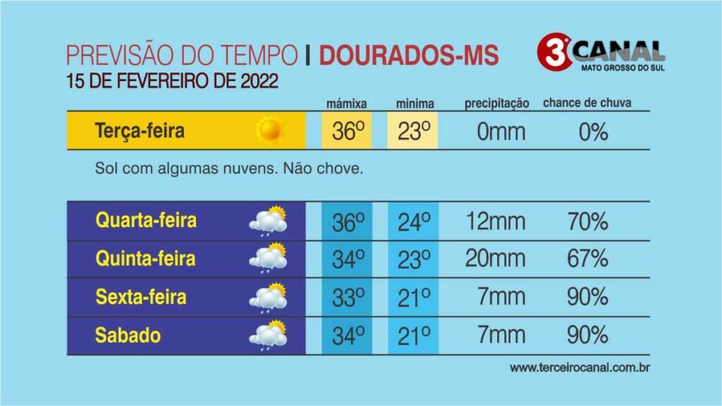 O sol e o calor continuam sendo os destaques do tempo nesta terça-feira (15) em Mato Grosso do Sul. A tendência segundo o Centro de Monitoramento do Tempo e do Clima, é de tempo firme com variação de nebulosidade para maior parte do Estado, exceto nas regiões centro-norte, sudoeste e pantaneira, onde o aquecimento diurno pode provocar pancadas de chuva com tempestades bastante isoladas.