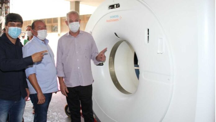 Em Paranaíba, junto com o prefeito Maycol Queiroz, deputado Gerson Claro, secretária municipal de Saúde Franciani Forni, vereadores e lideranças, o secretário procedeu à entrega de um aparelho de tomografia computadorizada e de um aparelho de ultrassom do Programa “Bem Nascer MS”.