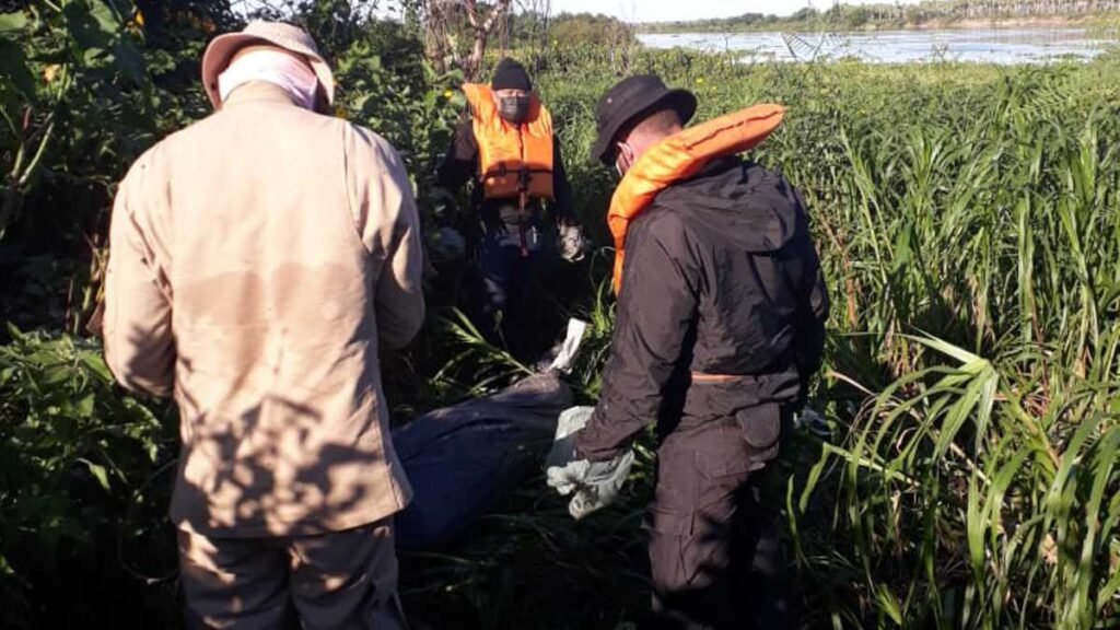 Depois de dois dias de buscas, a vítima foi encontrada do outro lado da margem do rio, 50 m para dentro da mata, com quatro perfurações de arma de fogo, que confirmou o homicídio.