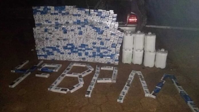 No interior do veículo os policiais localizaram grande quantidade de cigarros e agrotóxicos contrabandeados, foram realizadas rondas pelo local, porém o condutor não foi localizado.