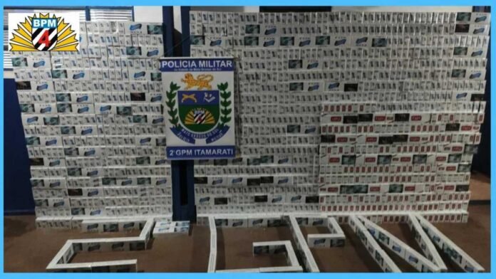 A equipe diante da constatação verificou que no interior do veículo continham cigarros contrabandeados do Paraguai desacompanhados de qualquer documentação, o veículo apresentava danos na parte frontal causado pelo próprio condutor/autor na tentativa de fuga.