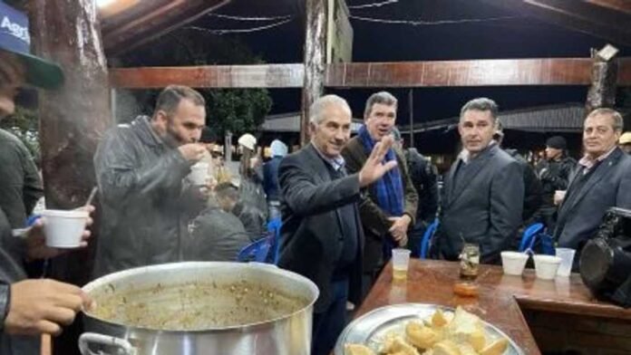 O governador visitou vários estandes na feira e fechou sua participação na EXPOAGRO de Dourados, degustando um delicioso e quente pucheiro raiz, confeccionado pelo Sargento PM JacomelI e sua Esposa Denise, na Cada da PMMS.