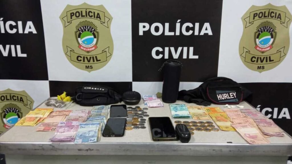 Num dos locais foi localizado cerca de R$ 500,00, quatro porções de cocaína pesando 1,1g, seis porções de maconha e dois aparelhos celulares. Um indivíduo de 21 anos foi preso por tráfico de drogas (relacionado a induzir, instigar ou auxiliar alguém ao uso indevido de droga), e um adolescente de 17 anos foi conduzido para prestar esclarecimentos.