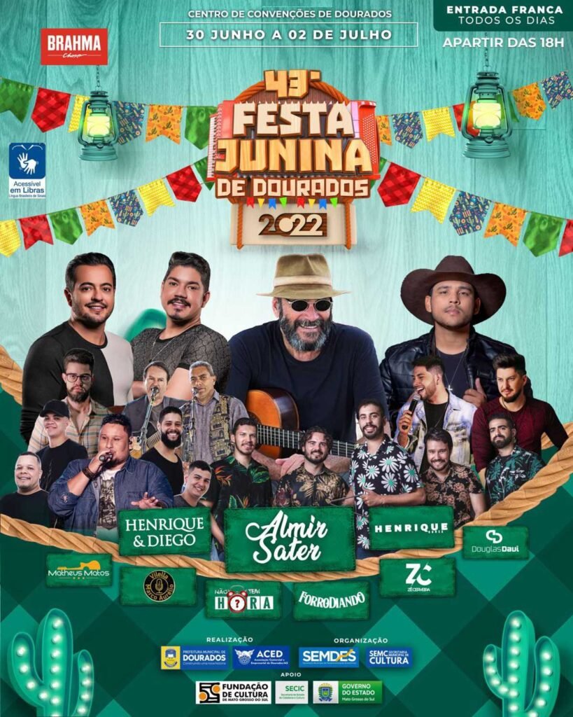 Confira a programação completa das atrações de shows nacionais e regionais na 43º Festa Junina de Dourados