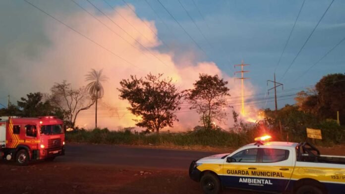 No início da manhã deste sábado (16), um incêndio ocorrido no Viveiro Municipal localizado no bairro Parque das Nações I, mobilizou diversos órgãos da Prefeitura de Dourados. Às 5h40, a GMA (Guarda Municipal Ambiental) foi acionada para ajudar a combater o fogo que estava espalhado em diversos pontos do local, que recebe descarte de galhos e podas de árvores.