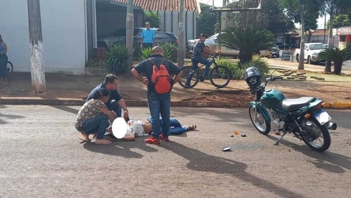 Uma mulher de 65 anos foi encaminhada ao Hospital da Vida em estado grave após sofrer um grave acidente durante a tarde desta segunda-feira (18), nos cruzamentos das ruas Palmeiras com a rua Ediberto Celestino de Oliveira, no Jardim Santo André em Dourados, a vítima que não teve nome divulgado teve serias fraturas nas duas pernas e escoriações pelo corpo.