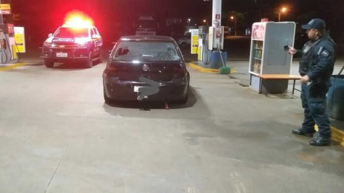 Os disparos efetuados pelo autor atingiram os vidros de um outro veículo VW/Saveiro de placas de Ivinhema/MS, que encontrava estacionado no pátio do Posto de combustível.