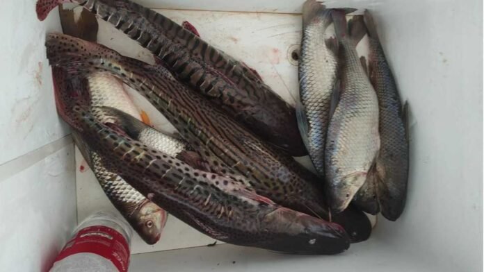 Policiais Ambientais de Dourados foram acionados por Policiais Civis do Serviço de Investigações Gerais (SIG) de Maracaju no dia (23) no final da tarde, para a realização dos autos administrativos (multas), em razão da abordagem de um veículo Toyota Hilux com três pescadores, transportando pescado capturado durante a piracema. Quando a PMA chegou ao local, verificou que os investigadores haviam apreendido na rodovia BR 267, no município de Maracaju, na carroceria do veículo, oito exemplares de peixes das espécies pintado, cachara, curimbatá e piapara, pesando 21 kg.