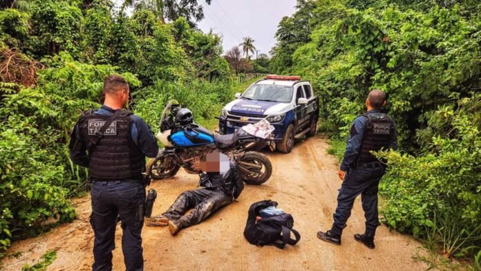 Corumbá MS, na tarde deste sábado, a equipe da Força Tática recebeu a informação de que uma moto Big Trail, cor azul e sem placa, havia entrado na Estrada de acesso ao lixão, acompanhada por um veículo carro Gran Siena prata.