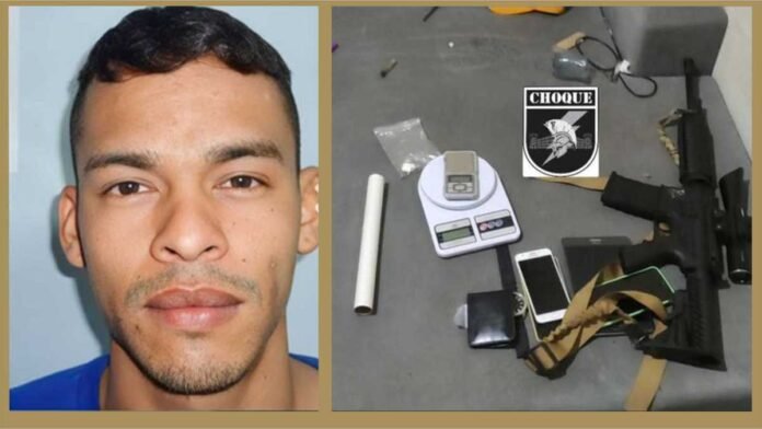 Com conhecimentos dos fatos, uma equipe do Batalhão de Choque foi averiguar a denúncia e chegando ao local visualizaram um homem identificado como, Thiago Felipe Peralta Alecrim de 27 anos, vulgo ‘Pé de Sapo’, em atitude suspeita, próximo a porta de entrada de sua residência.