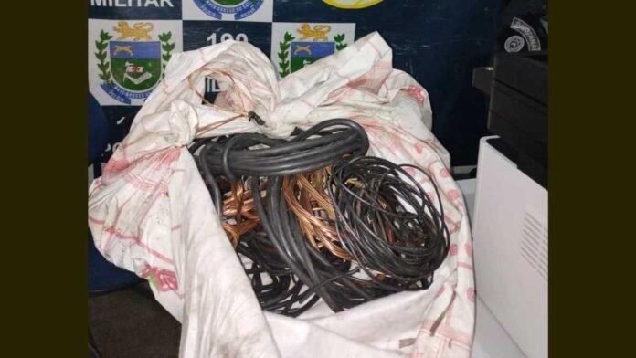 Diante das informações, a guarnição PM deslocou até o local e logrou êxito em prender em flagrante o autor, ainda no interior do imóvel, em posse de uma grande quantia de fios de energia. Ao ser indagado sobre o delito, ele confessou ter subtraído de um imóvel, que pertence a APAE.
