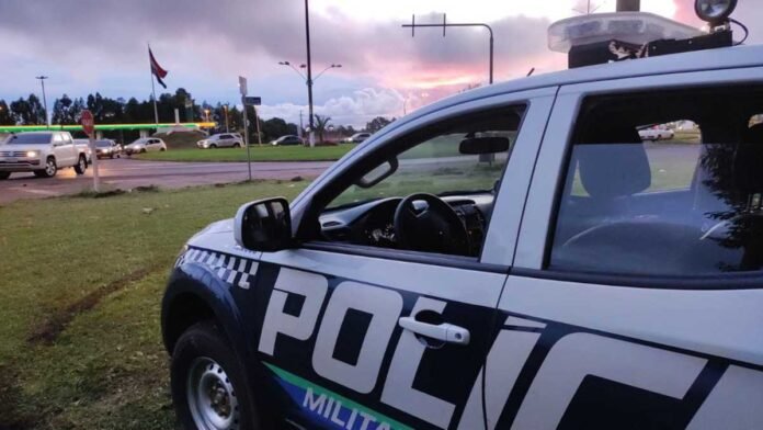 Ponta Porã (MS) – O fato ocorreu na tarde deste domingo (28/05), quando Policiais Militares realizavam policiamento ostensivo e preventivo pelo bairro São Vicente de Paula quando, na entrada do bairro, avistaram um indivíduo em atitudes suspeitas. O indivíduo, ao visualizar a viatura policial, prontamente deu meia volta no sentido de sua direção, abaixou o seu rosto na tentativa de ocultar a sua face e ainda tentou se esconder atrás de um muro, fato que chamou a atenção dos policiais que procederam com a devida abordagem.