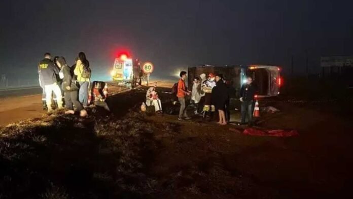 Durante a na madrugada desta segunda-feira (12), um gravíssimo acidente ocorrido no Km 626 da da BR 163, em São Gabriel do Oeste o que na qual um ônibus da empresa Andorinha veio a tombar, deixou uma mulher ainda não identificada morta e outros 28 passageiros feridos após o ônibus cair numa ribanceira.