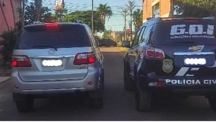 A Polícia Civil, por intermédio do Grupo de Operações e Investigações (GOI) recebeu a informação de que o veículo marca/modelo: Toyota/Hilux, de cor prata, relacionado como produto de estelionato, estaria em um imóvel na região do Jardim Nhanhá, na cidade de Campo Grande/MS. No dia 18/06, a equipe policial foi até o endereço informado e localizou a caminhonete com as características previamente repassadas em frente a uma garagem de compra e venda de veículos.