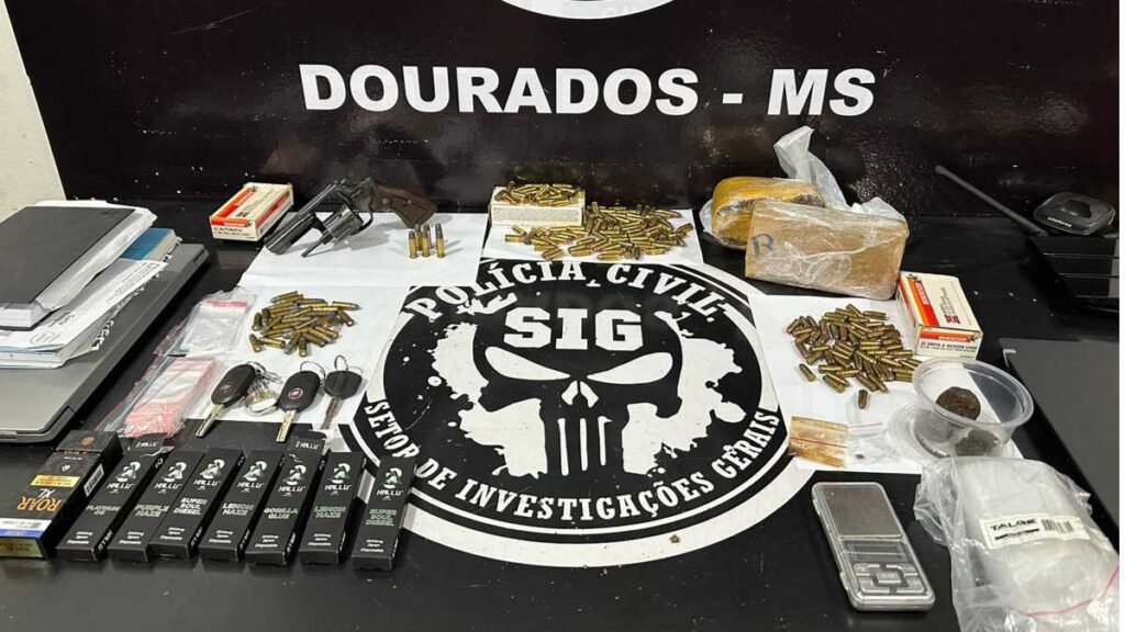 Foram apreendidas armas de fogo, veículos, entorpecentes, balança de precisão e munições. As munições apreendidas totalizaram mais de 180 cartuchos de calibres 9mm e .38, todas importadas.