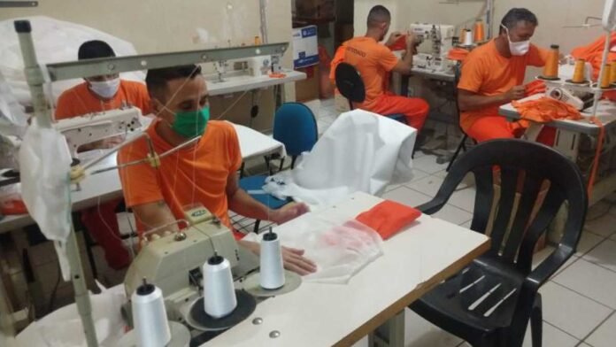 Dois reeducandos atuam na produção dos aventais cirúrgicos descartáveis e recebem remição de um dia na pena a cada três de serviços prestados, conforme estabelece a Lei de Execução Penal. Na oficina, outros dois detentos trabalham na confecção de uniformes utilizados pela massa carcerária da unidade e até mesmo de outros estabelecimentos penais.